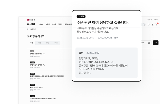 - lge.living@lge.com 으로 문의 사항을 보내 주시면 순차적대로 답변 드리겠습니다.